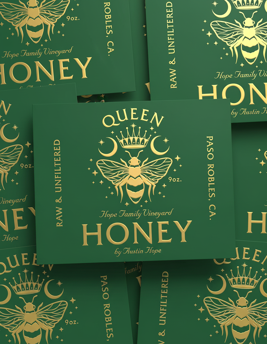 I was tasked with creating a honey label for Austin Hope, rooted in symbolism and family meaning. The bee serves as a tribute to his mother—the Queen Bee—representing leadership, care, and the quiet strength at the center of the Hope family.
